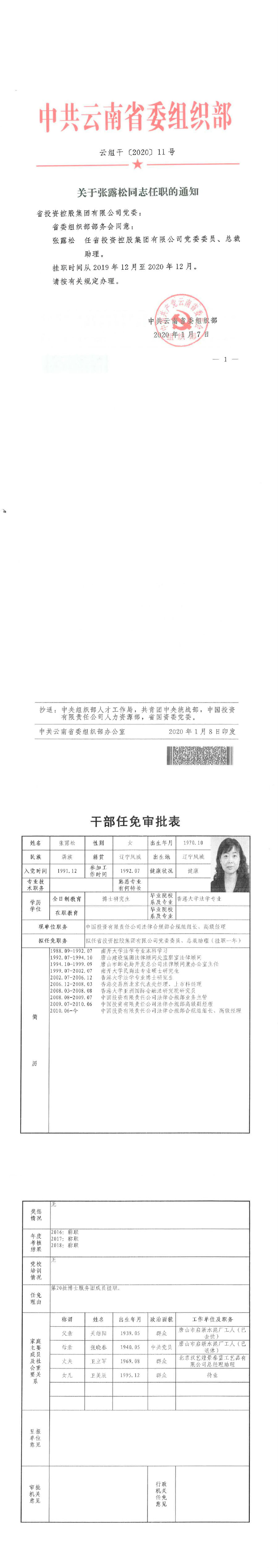省委组织部关于张露松同志任职的通知