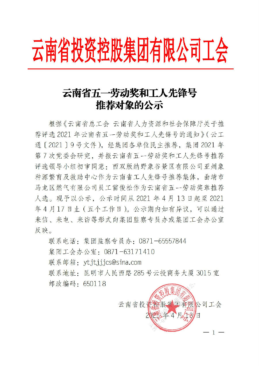 云南省五一劳动奖和工人先锋号推荐对象的公示